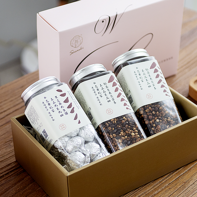 (Flower Dance Jijia)Nine steamed nine tanned sesame balls gift box with red beans and barley tea Crocus rose gift box
