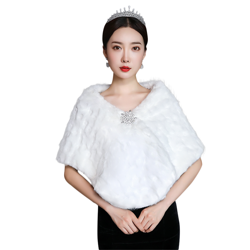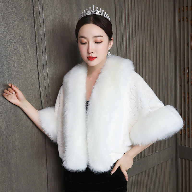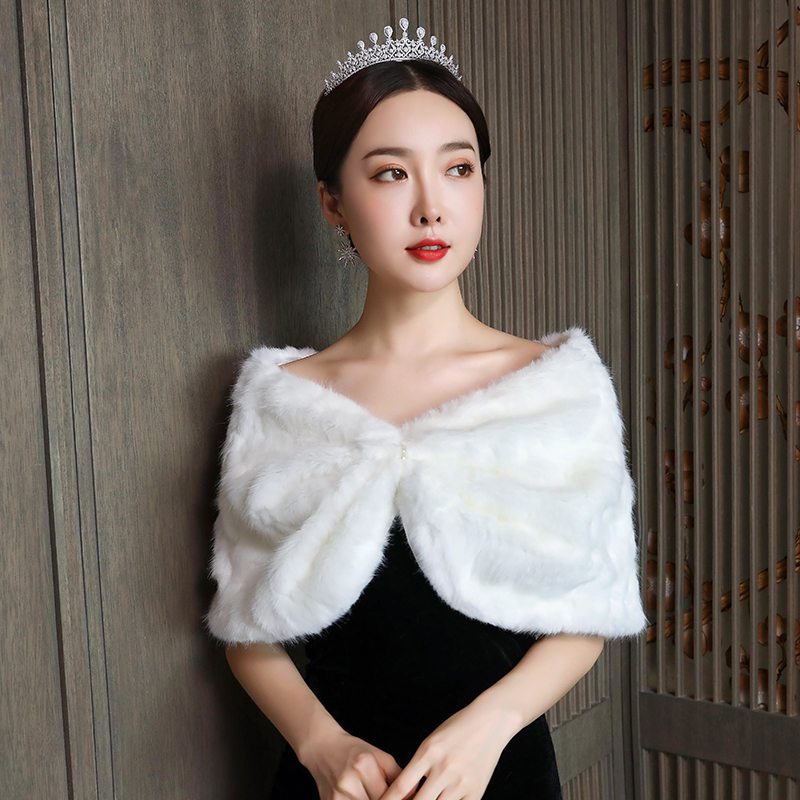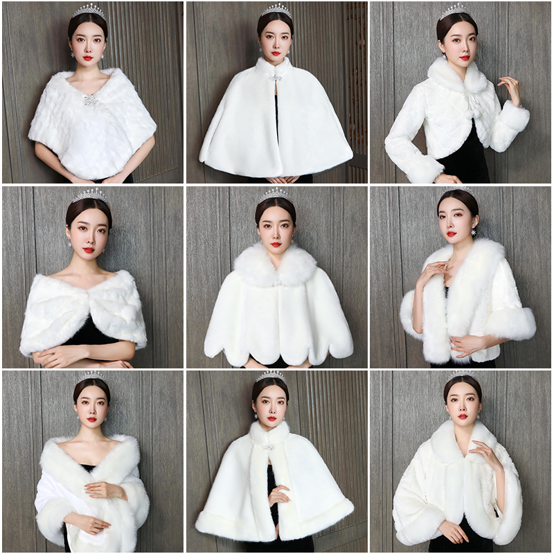 Bride Wedding Fur Shawl Female Wedding Dress Bridesmaid Warm Thickening Dress Cape Shawl Winter Cloak Jacket Imitation Fur