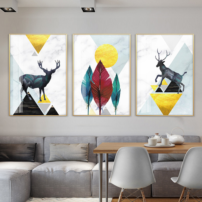 Light Extravaganza Painting New Chinese Style Modern Minimalist Dining Room Triptych Sofa Background Wall Hanging Painting Living-room Decoration Painting A Fortune Deer