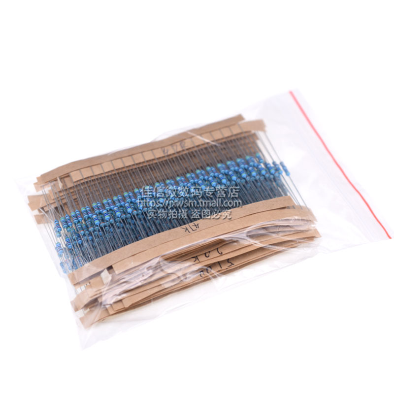 1 4W metal film element resistor pack 1% 25 kinds of commonly used five-color ring resistors 20 each, a total of 500