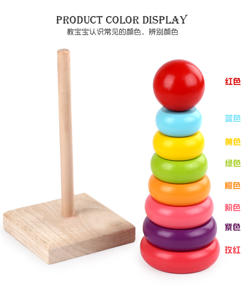 Stack the folding lap with the folding coil of the rainbow tower folded high early teaching children's intelligence 2 - 3 years old wooden baby toy