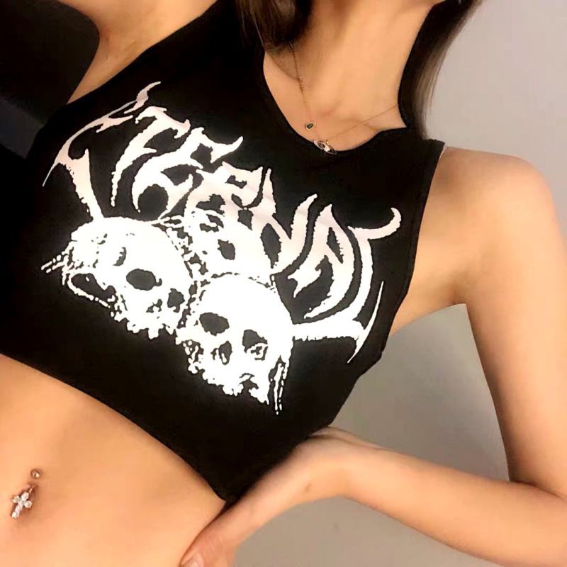 European and American style sexy short waist-exposed INS Harajuku style sports fitness cheerleading women's vest skull print