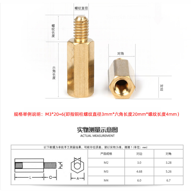 M3M4 copper column hexagonal copper column copper stud Main board fixed isolation support interval column computer case copper column screw