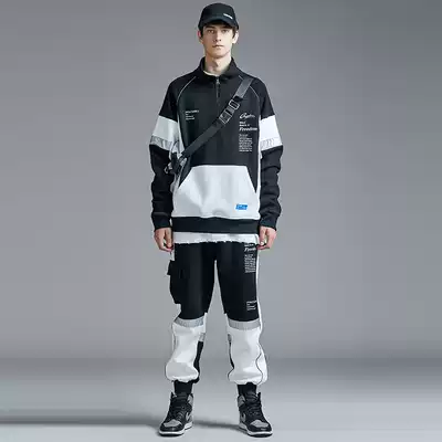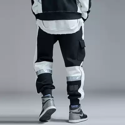 GUUKA black and white stitching sports thick cotton pants men's tide card students hip hop printing plus velvet thick toe pants loose