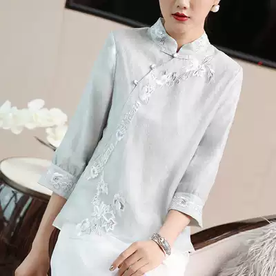 Literary retro Republic of China Zen women's clothing Chinese style Hanfu summer pan buckle upper cheongsam temperament elegant tea dress female summer