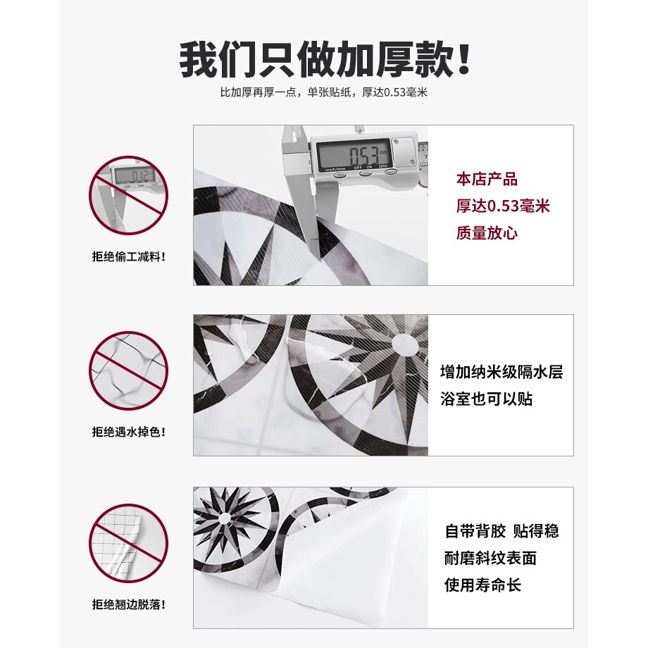 Retro Self-Sticking Living Room Balcony Floor Sticker Decoration Toilet Waterproof Anti-Slip Tile Sticker Kitchen Anti-Oil Sticker-Taobao