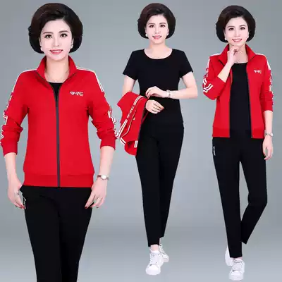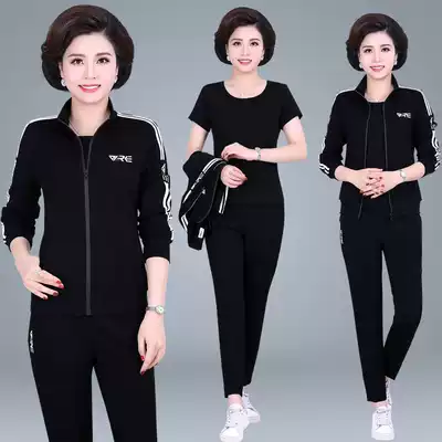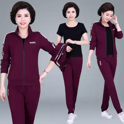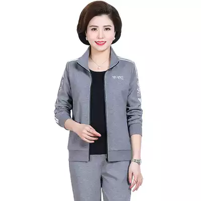 Middle-aged and elderly sports suit women 2021 spring and autumn cotton long sleeve loose large size casual wear mother three-piece set