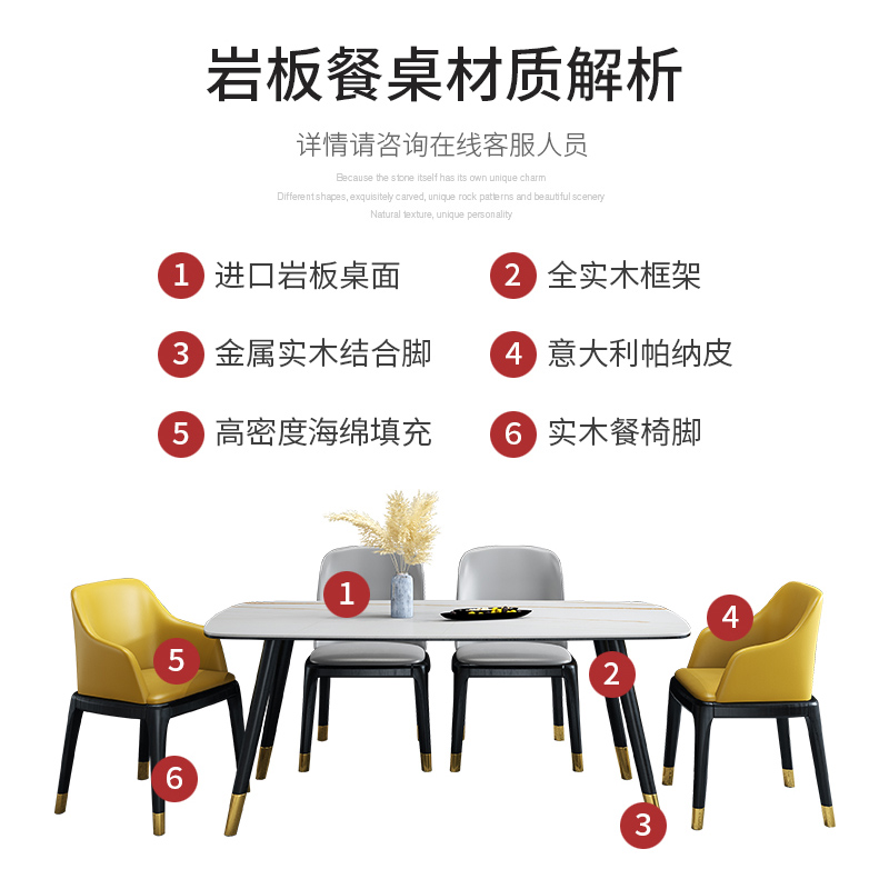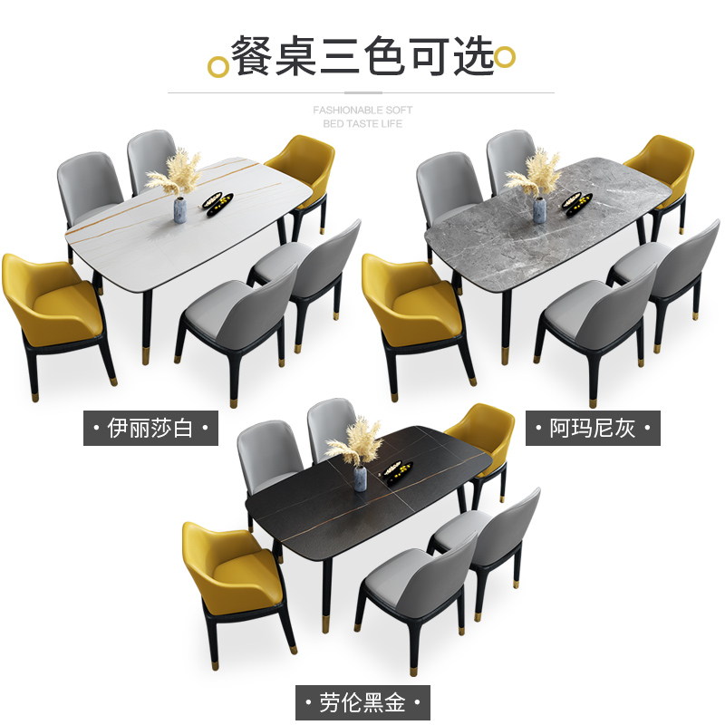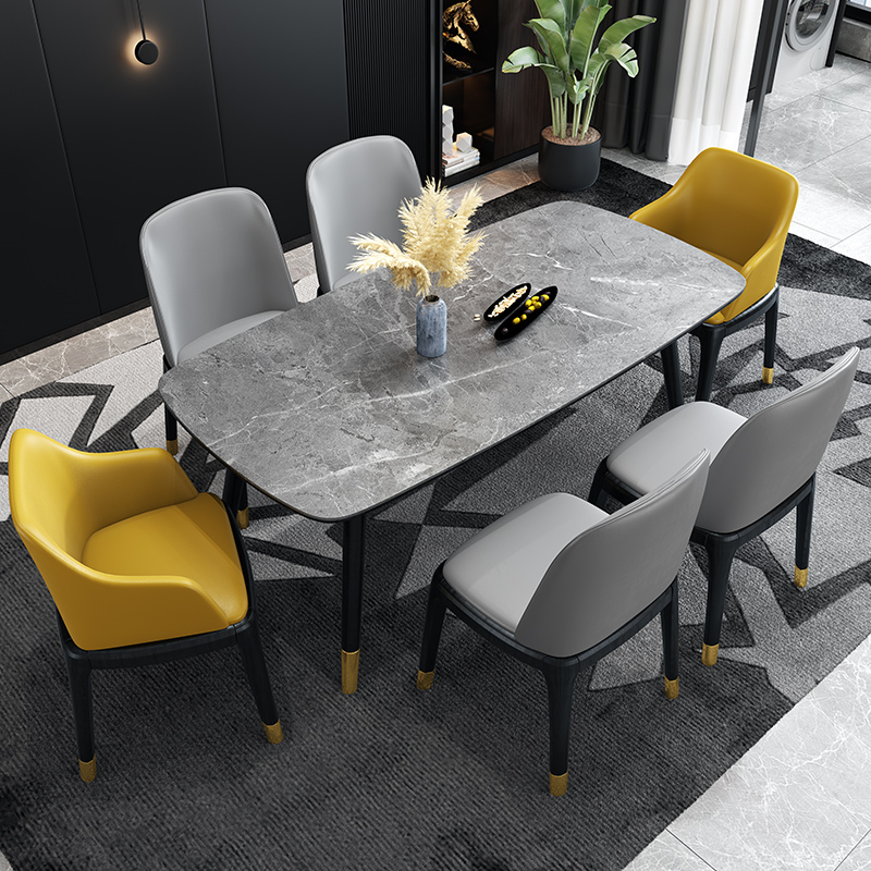 Italian style extremely simple rock plate dining table and chairs combined Nordic solid wood table small family type minimalist modern home rectangular table