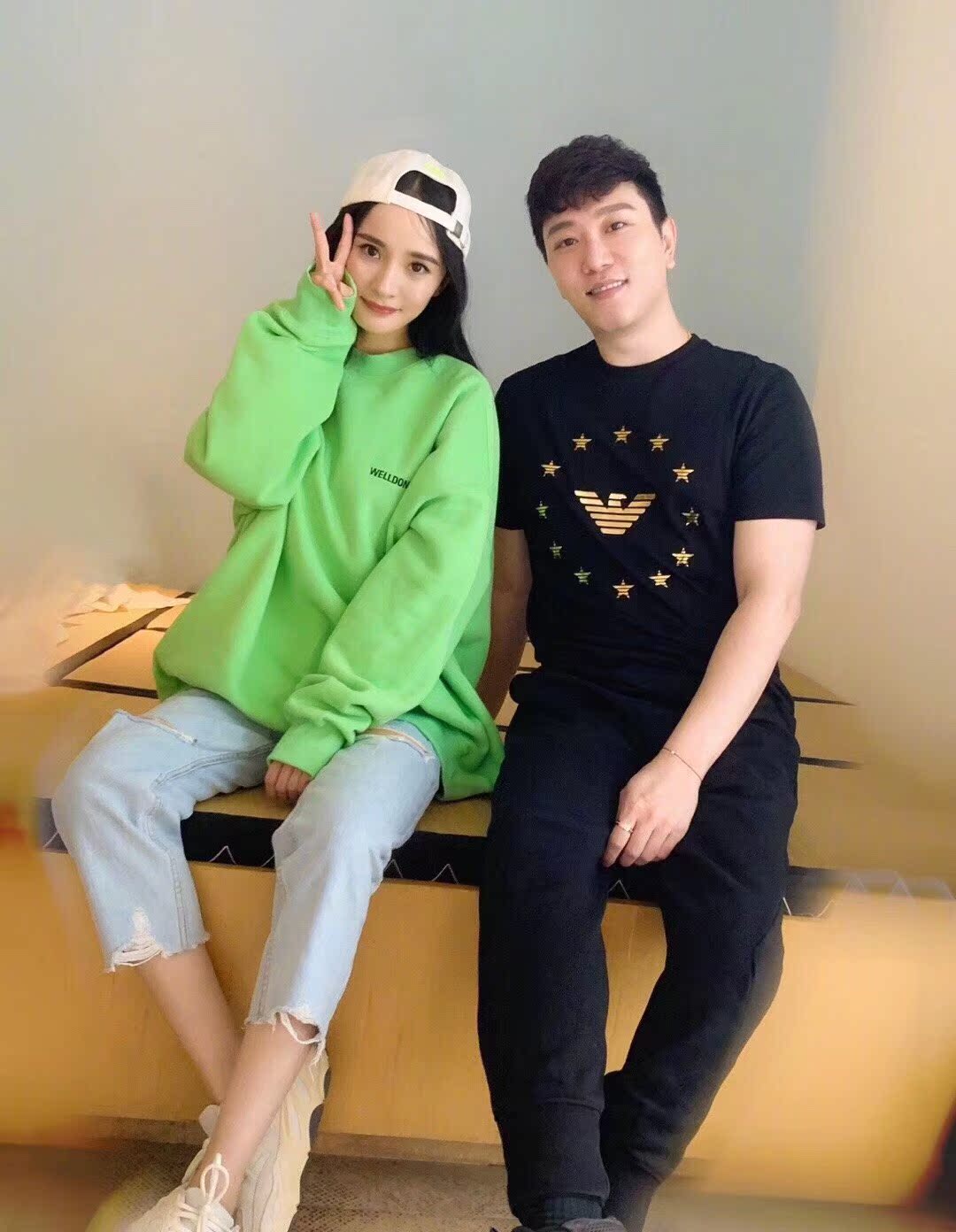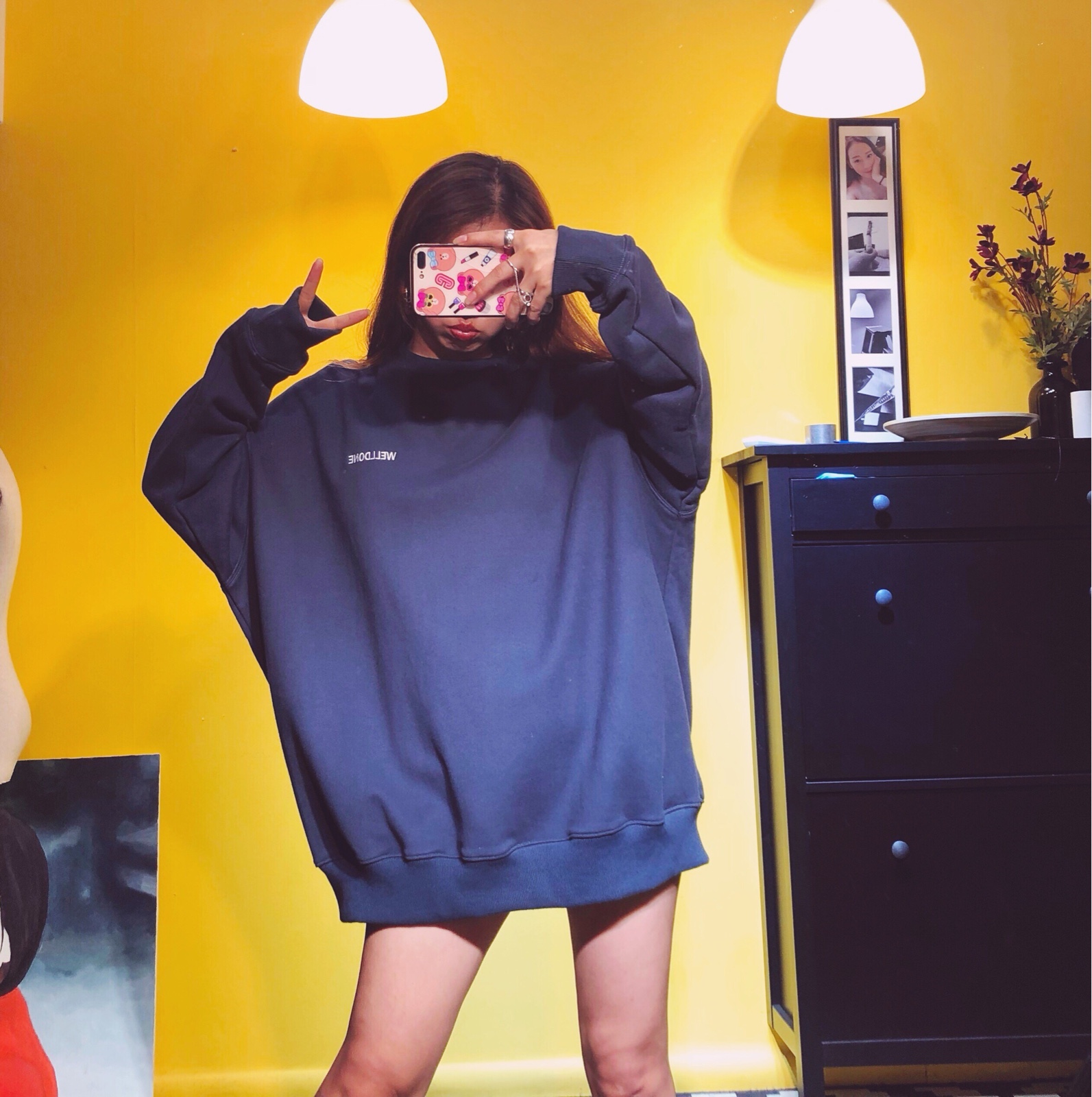 Yang Mi with the same we11 goods king done new velvet pullover loose sweater large version of autumn