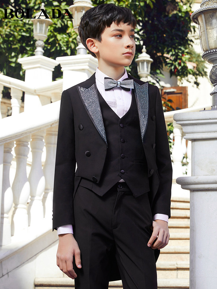 Black 5-piece set (top, vest, pants, shirt, collar) 5-piece black diamond set (top, vest, pants, shirt, bow tie)