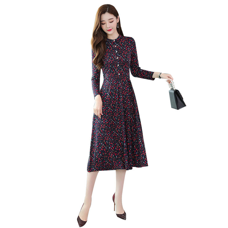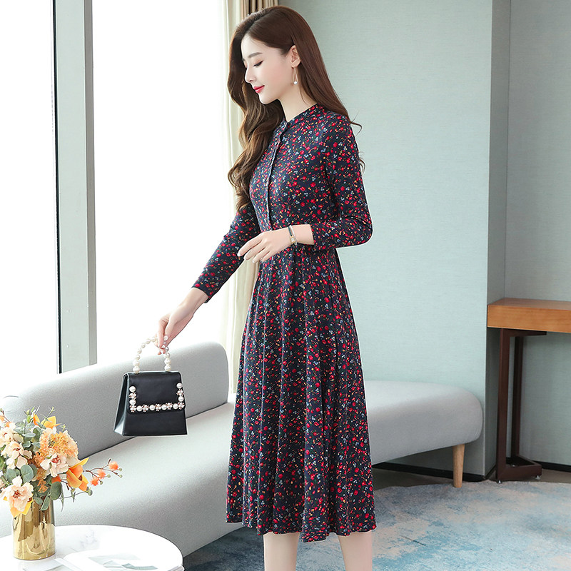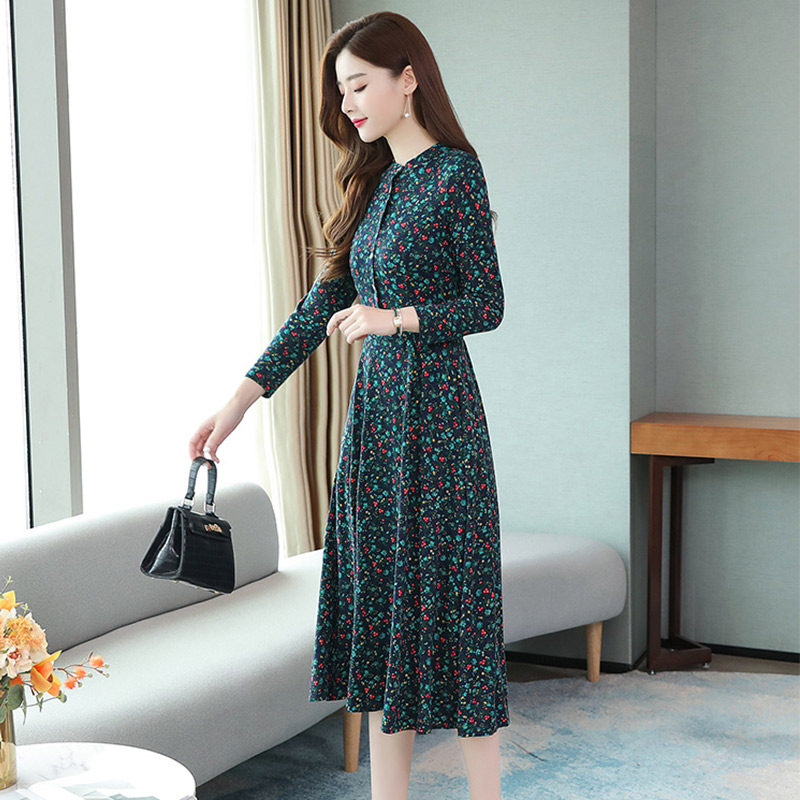 Your wife's age-reducing long sleeve floral dress female 2021 autumn dress new waist high-end temperament mother long skirt