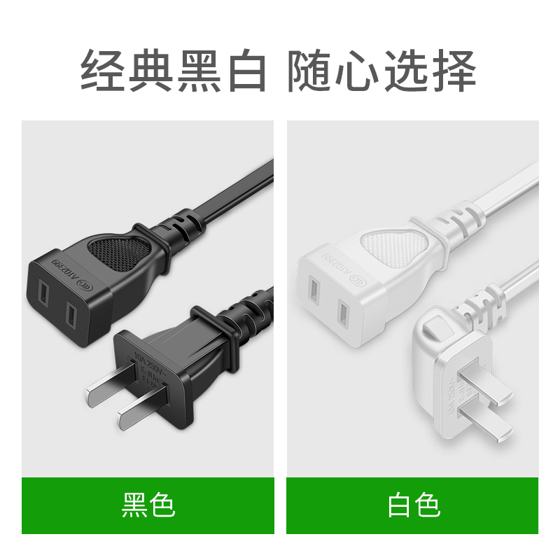Power extension cord Two-plug lengthened male plug computer TV fan Electric car monitor Two-core socket Two holes