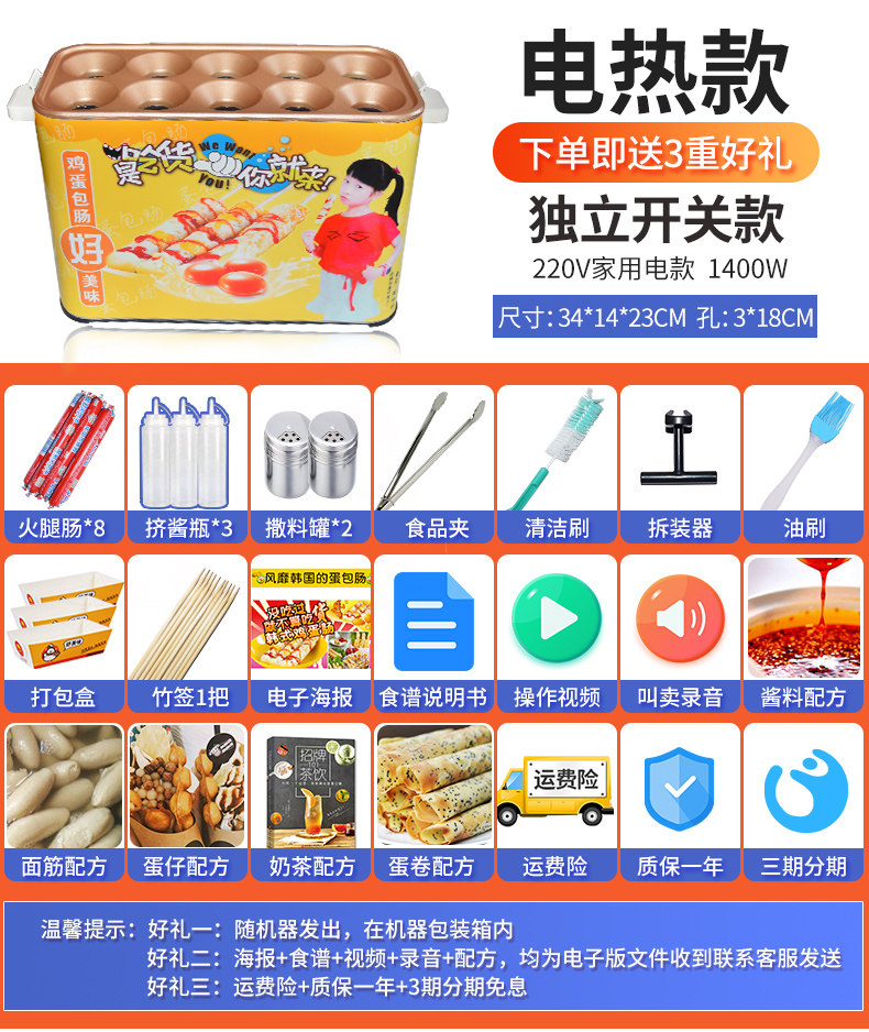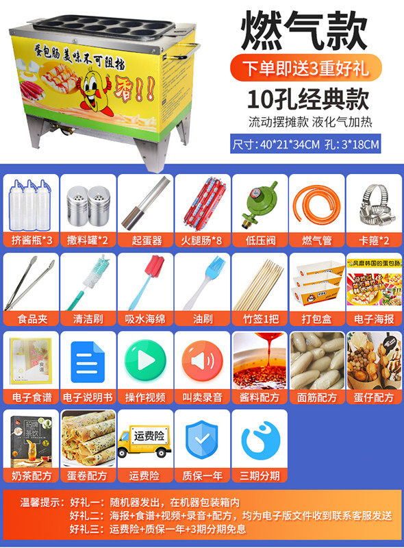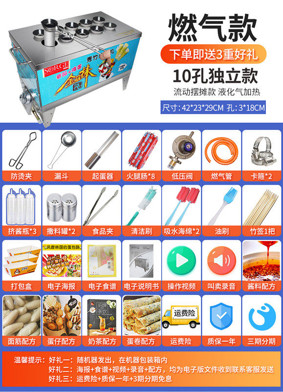 Gas egg sausage machine Hot breakfast show Bamboo egg sausage machine Commercial snack equipment Entrepreneurial egg sausage machine