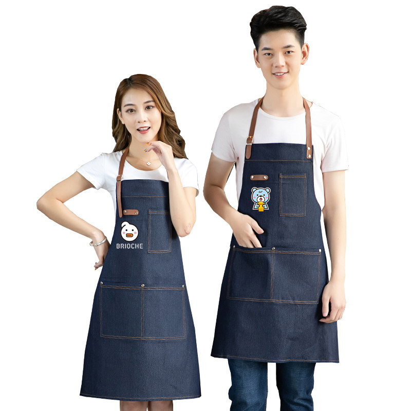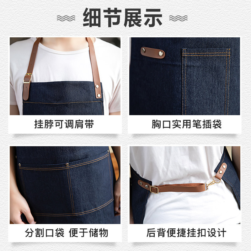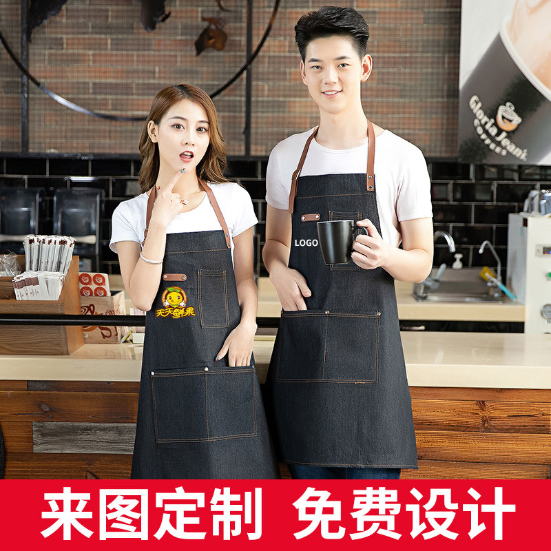 Coffee Shop Denim Apron Custom Logo Printed Word Milk Tea Shop Han Edition Fashion Work Clothes Catering Kitchen Women Booking