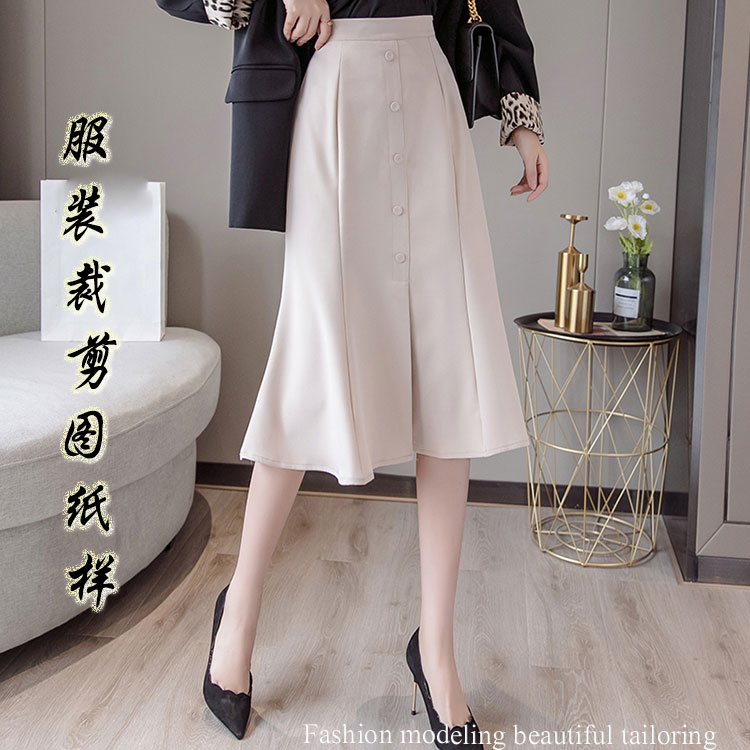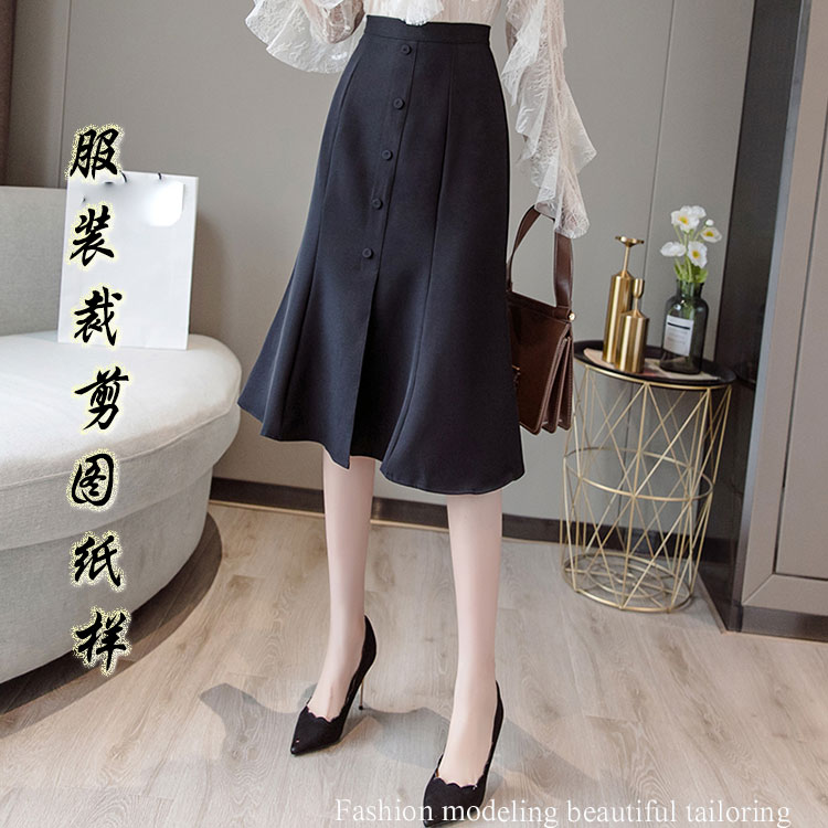 A-word skirt high waist skirt paper like a new eight fish tail skirt model clothing cutting drawing