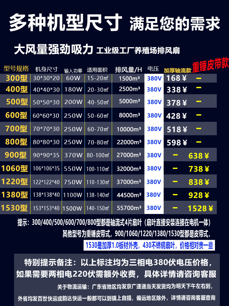 300 type 220 volts (limited to 1 set) (thickened axial flow) 400 type 380 volts (thickened axial flow) 400 type 220 volts (thickened axial flow) 500 type