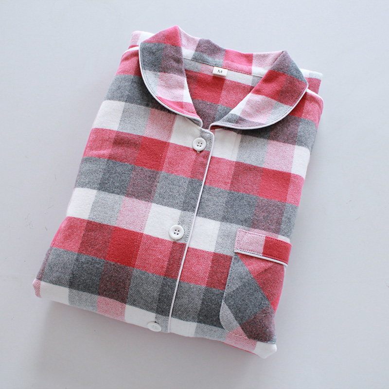 Spring Autumn Day Department Full Cotton Flannel Sleepwear Woman Long Sleeve Korean Version Plaid Pure Cotton Autumn Winter Mill Fur Warm Home Suit Suit