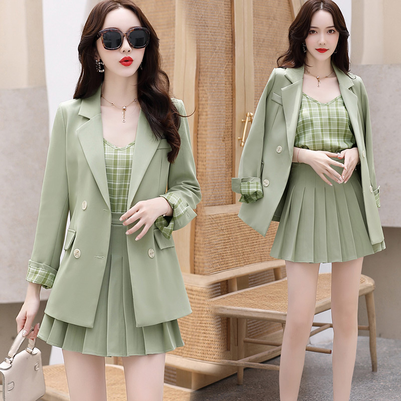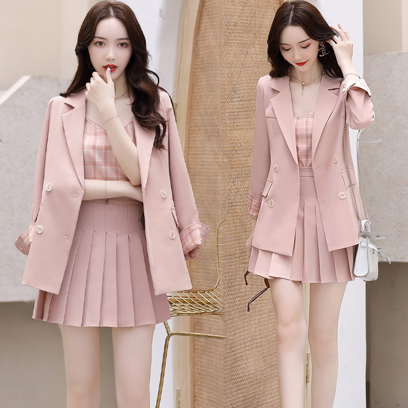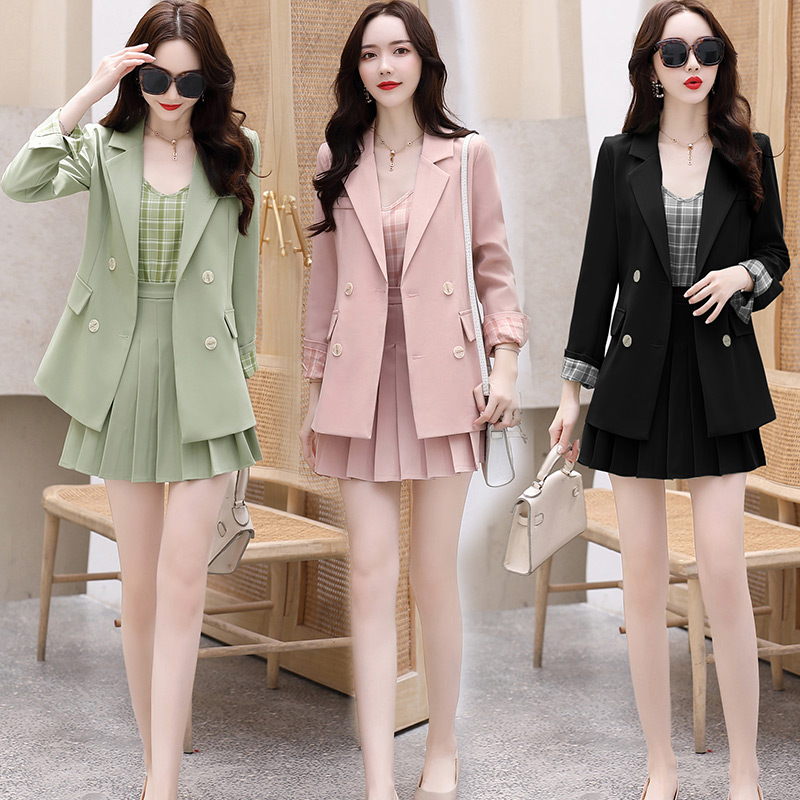 2022 new spring and autumn Korean version suit small suit jacket 100 plexen short dress temperament college wind small three sets