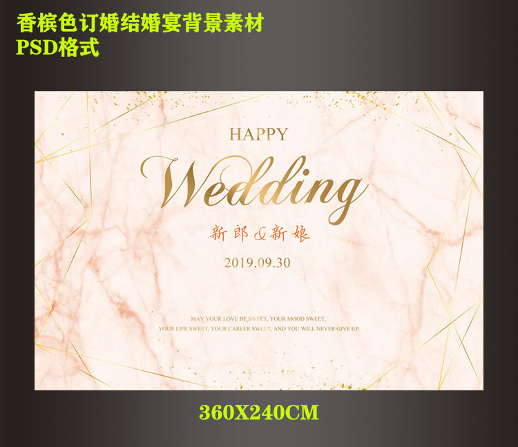 Champagne color wedding engagement back door banquet Birthday party welcome background KT board inkjet design psd file