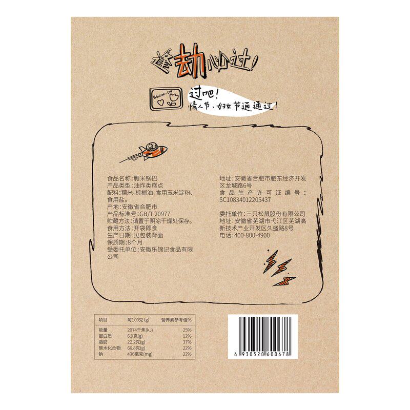 Three squirrels small cheap crispy rice pot 260gx2 bags of glutinous rice handmade pot snack Puffed snack specialty