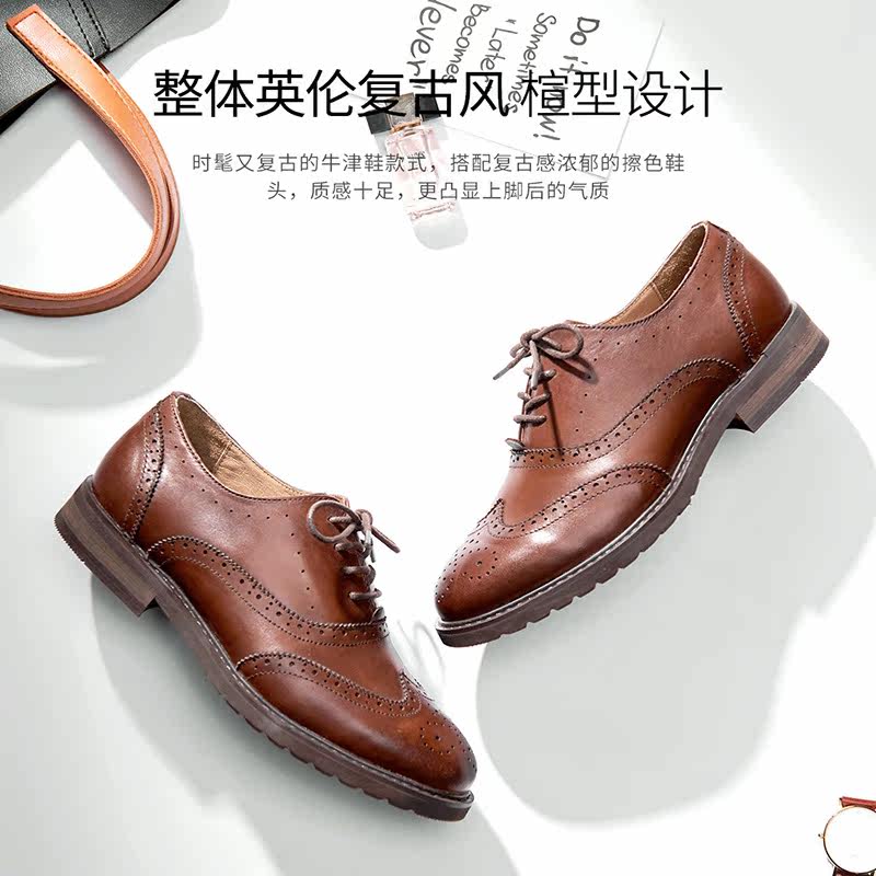 2019 genuine leather women shoes autumn models retro European and American lacing flat-bottomed single shoe Bullock small leather shoes female