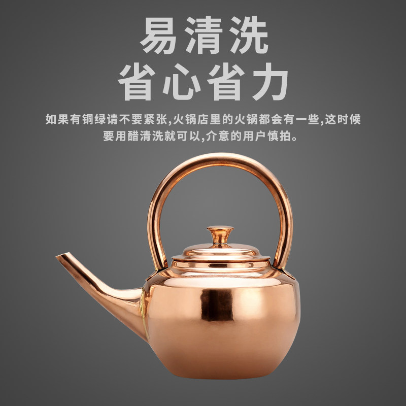 Copper Pot Burning Kettle Pure Copper Hand Thickened Pure Red Copper Long Mouth Add Stockpot Old Hotel Special Burning Kettle Teapot