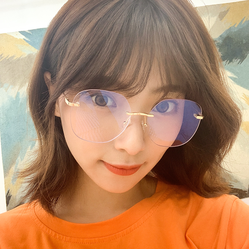 Large-frame round rimless glasses retro men can be equipped with myopia mirror students female anti-blue light flat mirror cut edge degree