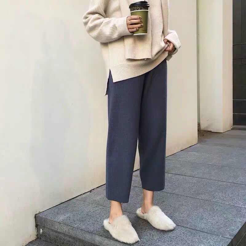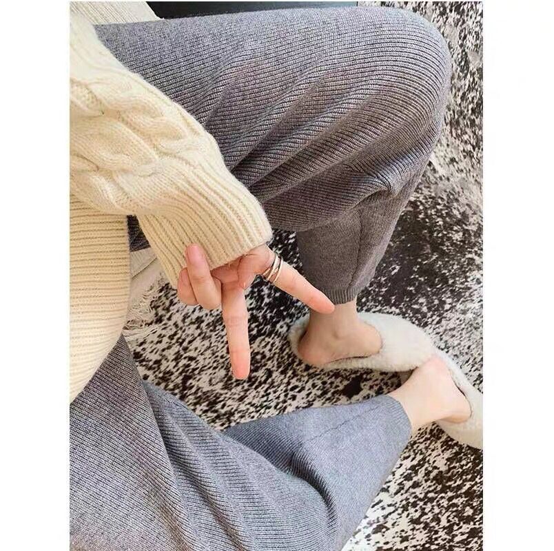 Pregnant women wide leg pants women autumn new tide mom knitted Harlan pants loose robe pants grandma pants autumn and winter pregnancy