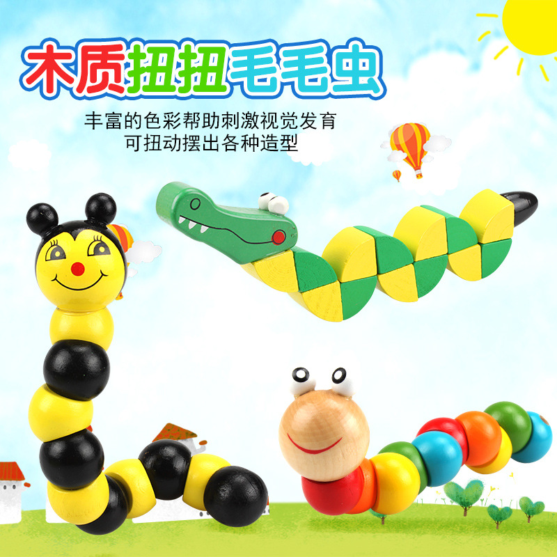 Wooden Colorful 100 Twist Crocodile Caterpillar Animal Bee Kini Twist Building Blocks Children Puzzle Magic Cube Toy
