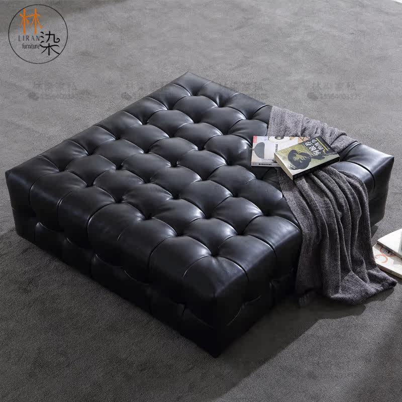 Nordic leather art square stool living room home sofa coffee table stool clothing cloakroom shoe changing stool American buckle leather pier