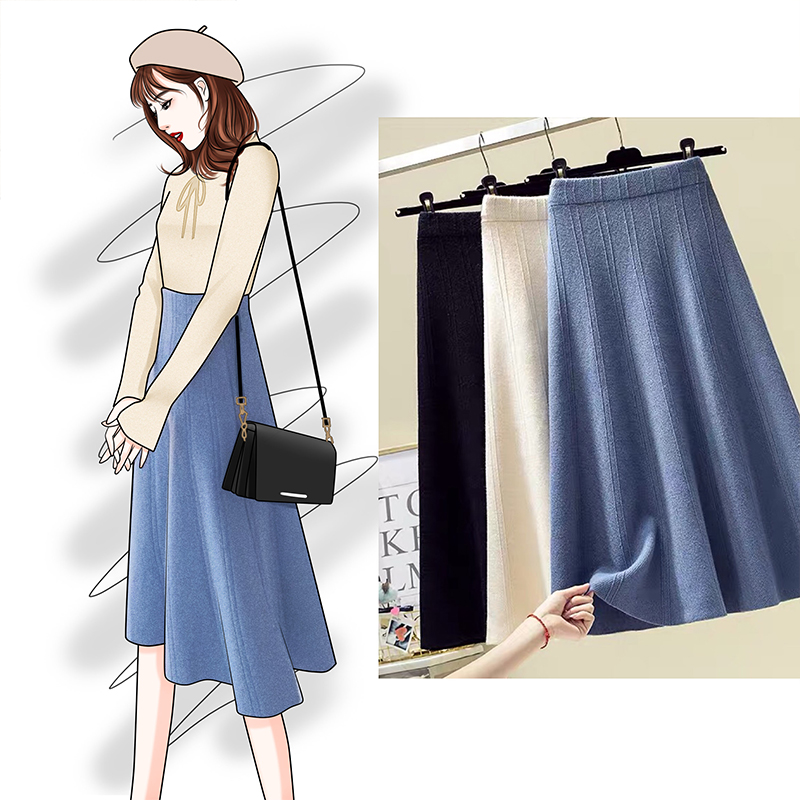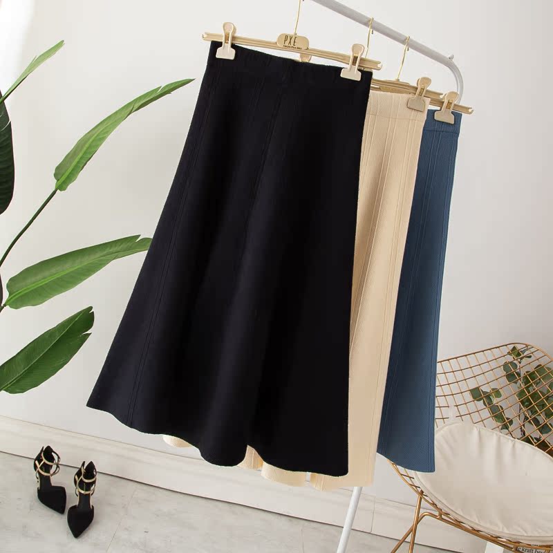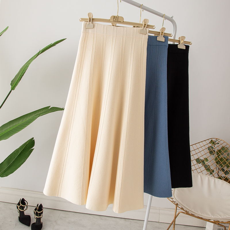 Large size dress High waist knit Thickened Long Skirt Half Body Skirt Woman 200 catty sister Thin 100 Hitch A Character Skirt Umbrella Skirt
