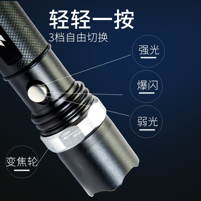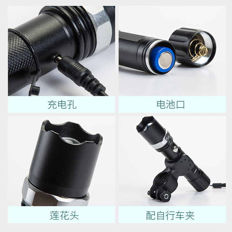 Outdoor super bright strong light far shooter flashlight battery replaceable portable dormitory female student charging night fishing bike