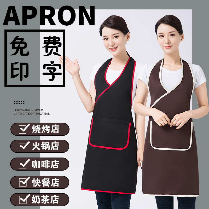 Attendant Working Apron Custom Logo Print Character Hotpot Barbecue Fast Food Restaurant Dining Kitchen Home Hanging Neck Waistline