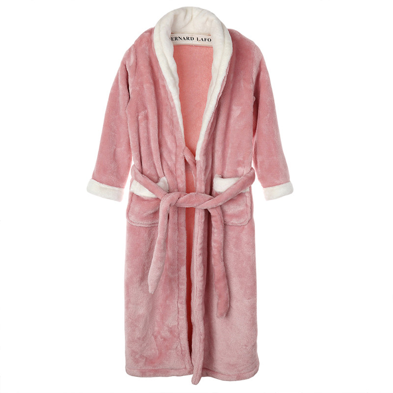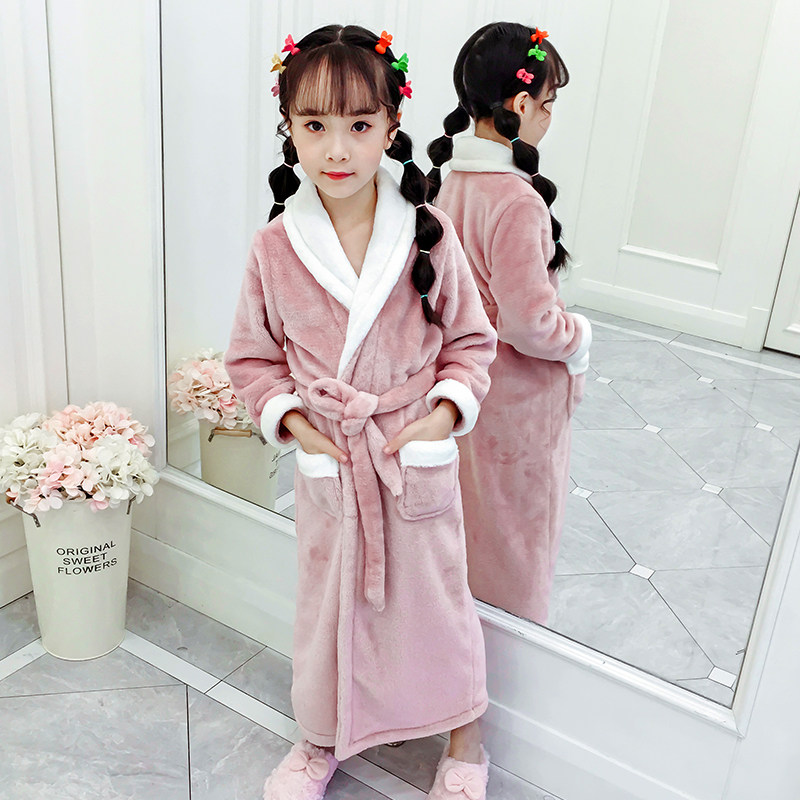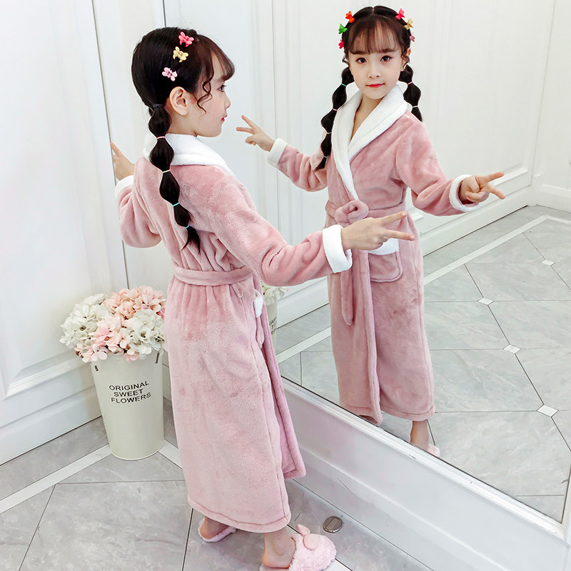 Children's bathrobe Coral velvet nightgown Flannel autumn and winter girls extended nightgown Girls lapel baby pajamas