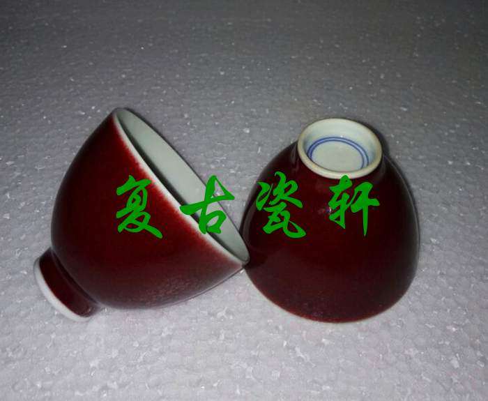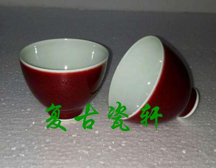 Jingdezhen Cultural Revolution Factory goods porcelain handmade Adobe Building Porcelain Factory Single Color Glazed Old sacrificial red glaze Chicken Hearts Cup tea Flush