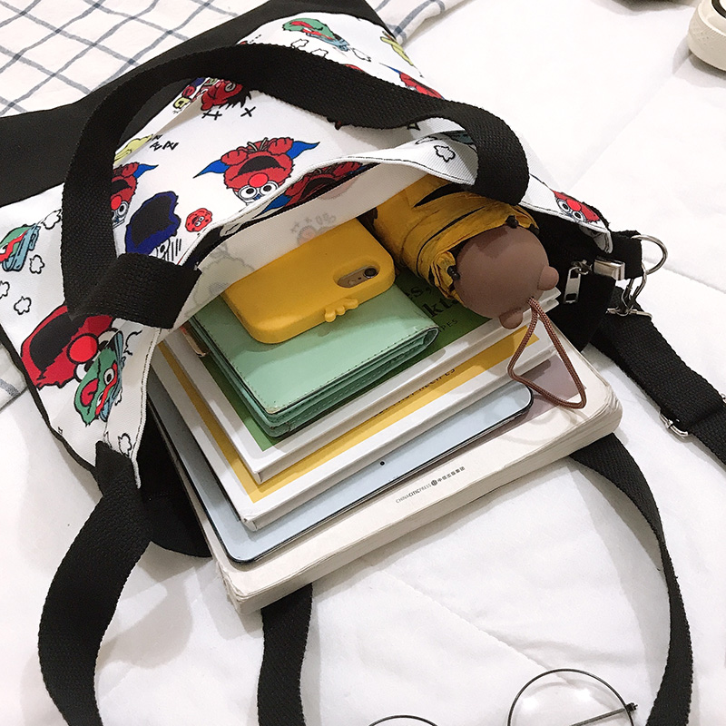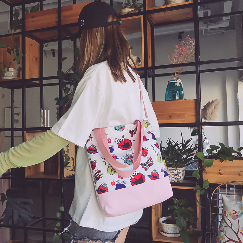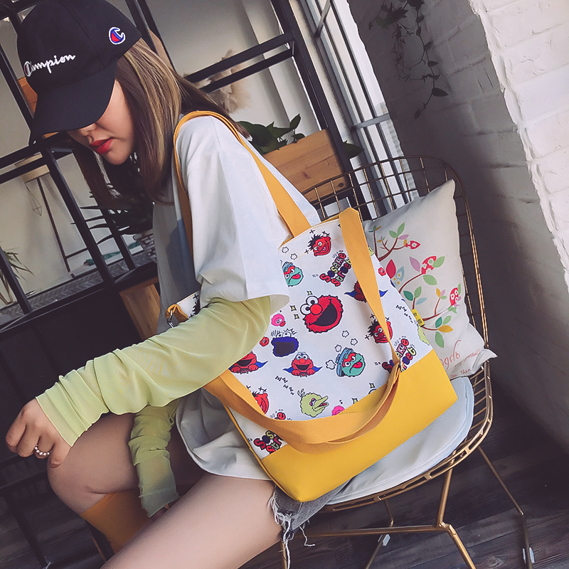 Canvas bag women's single shoulder oblique cross simple and wild student lazy wind splicing book tote bag Large capacity bag