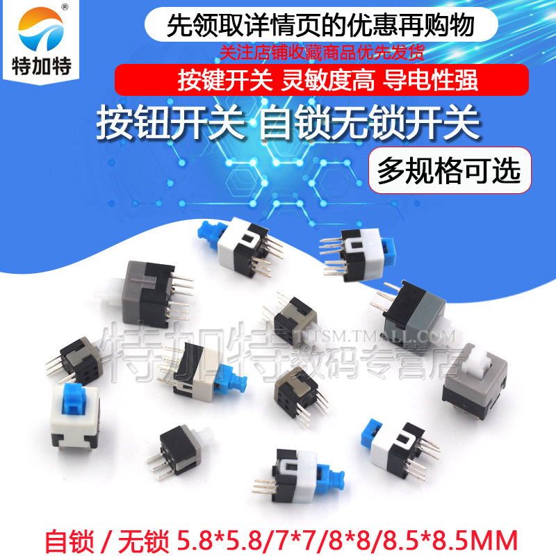 Button switch button 6-foot switch 5 8 * 5 8 7 * 7 8 * 8 8 5 * 8 5MM Self-lock without lock switch 6 feet