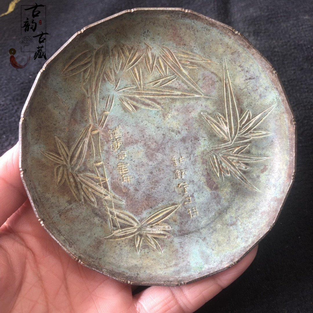 Home Imitation Antique Brass Sauces Bronze Disc Pendulum pure copper retro small tea Saucer Tea made of old Antiquity bronze ware tea tray