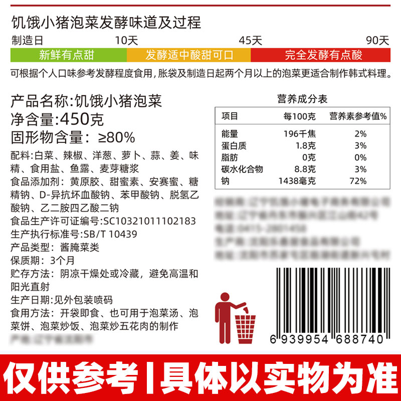 Hungry Pig Kimchi Korean spicy cabbage Hot and sour meals Korean style pickled pickles Pickles 450g*5 bags