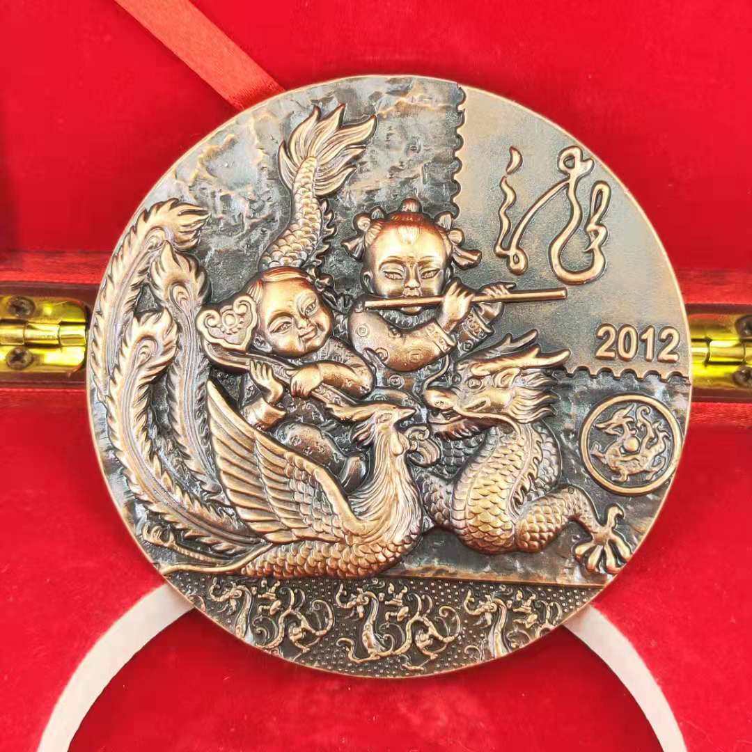 2012 zodiac dragon high relief large bronze chapter 80mm pure bronze statue badge commemorative badge with box with certificate