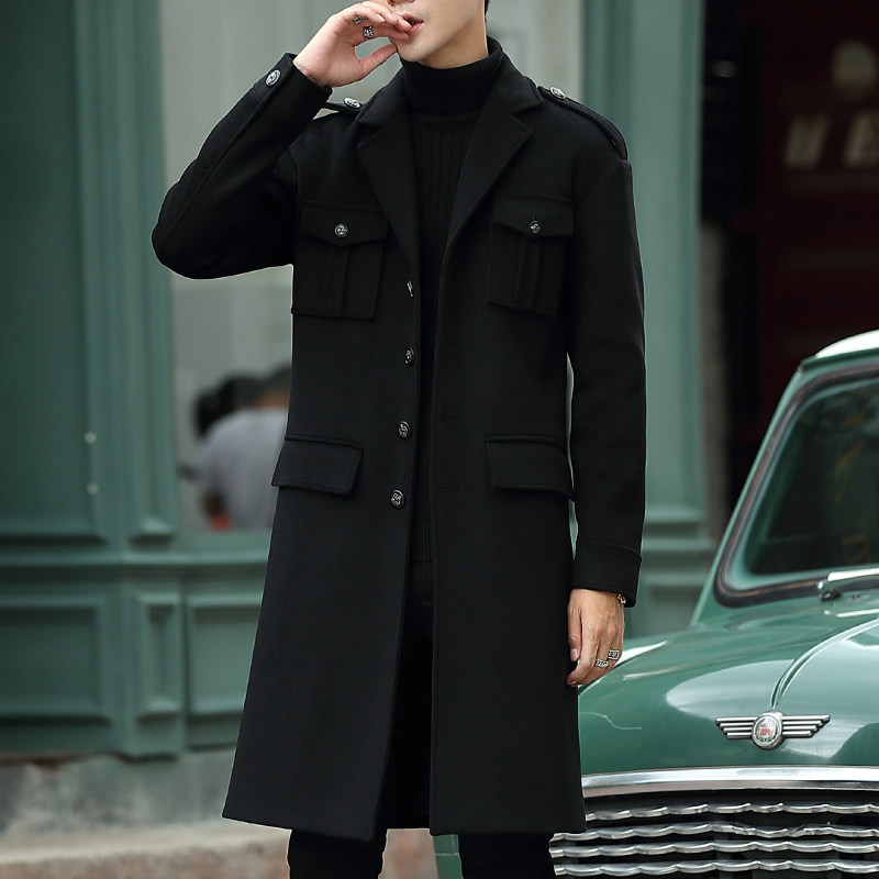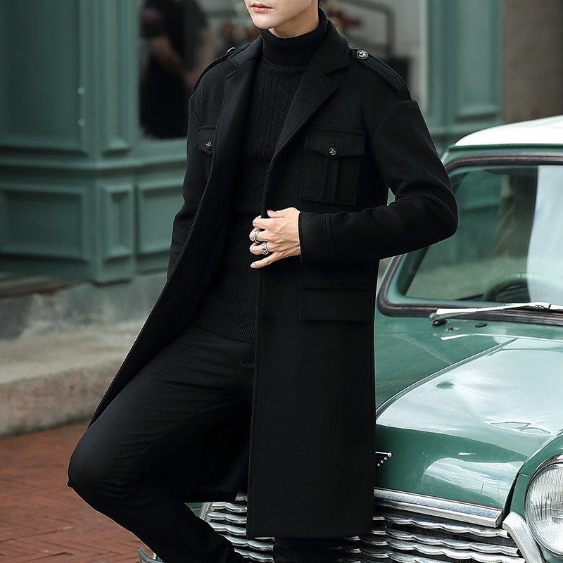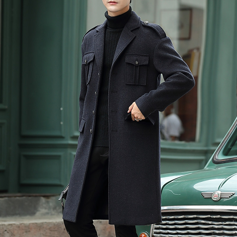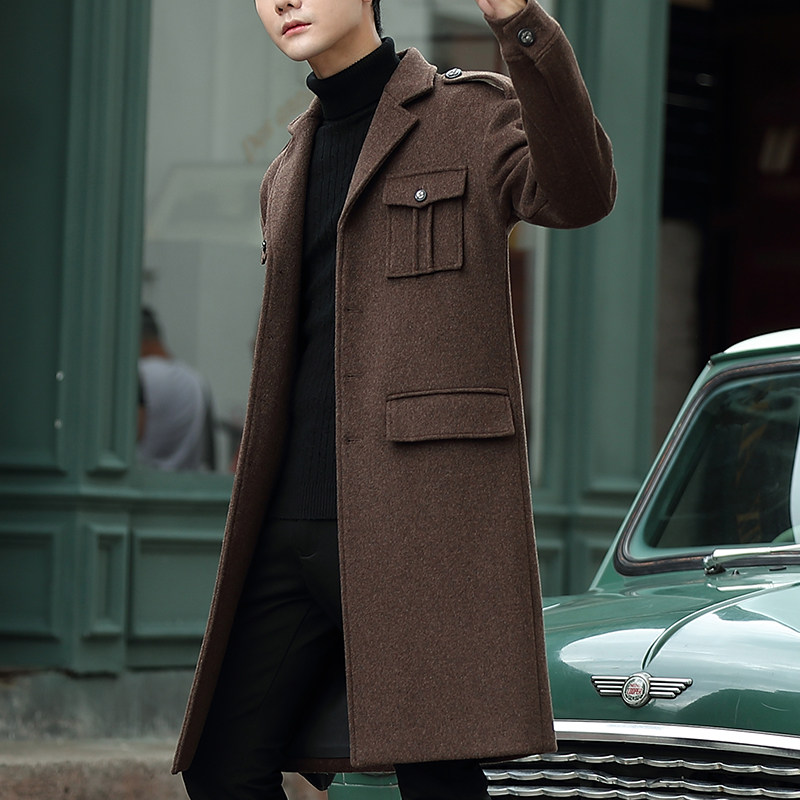 2019 new Korean version of the trend coat men's wool coat medium and long version of the young British windbreaker wool clothes