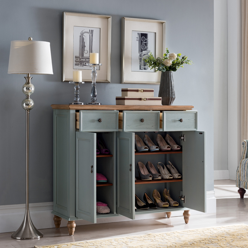 American simple walnut ash wood solid wood door shoe cabinet entrance cabinet Decorative cabinet bucket cabinet Makeup table