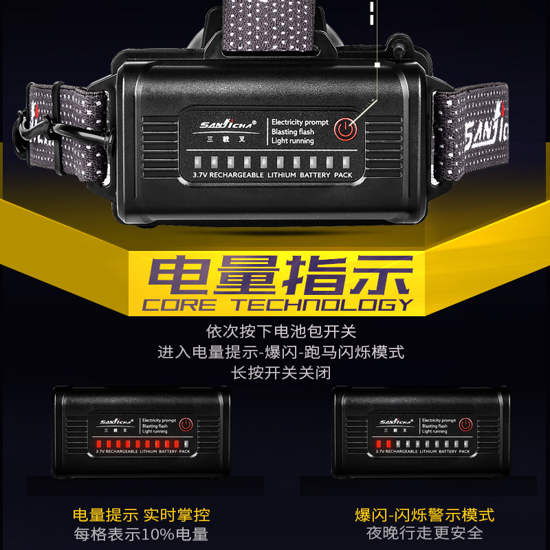 (Three electric version)All support to charge the phone(three electric version) Stronger battery life and higher brightness (36000W)Fixed focus long-range (white and red dual light) (36000W two electric version)Fixed focus: