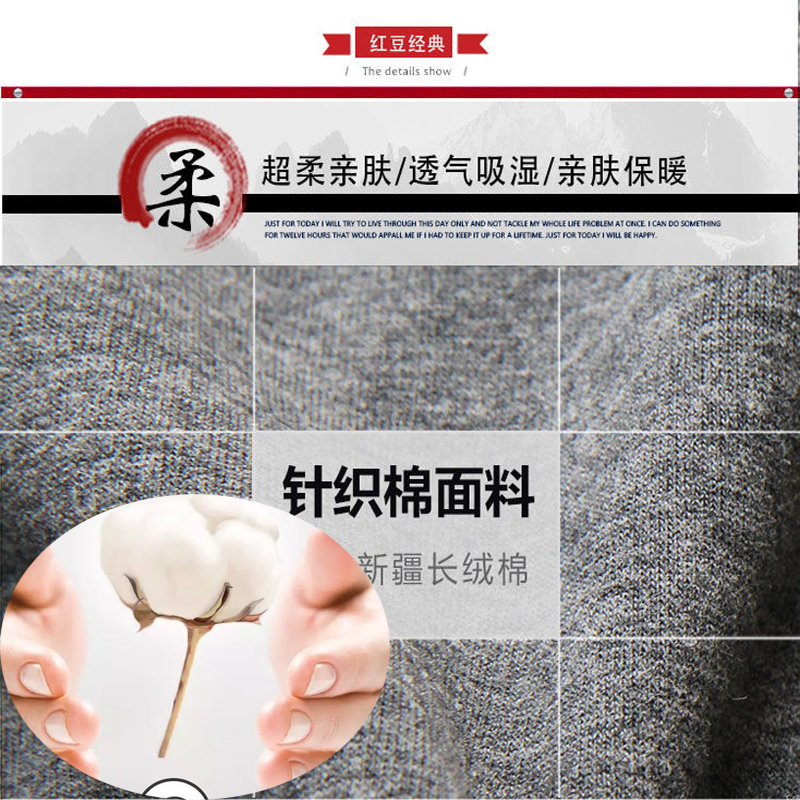 Red Bean underwear suit low-collar fat large-scale loose cotton round collar men and women thin warmth clothes autumn pants winter