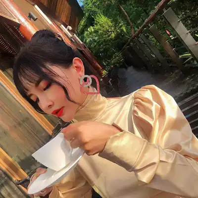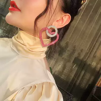 925 silver needle diamond-set exaggerated earrings women's fashion peach heart drop earrings big love crystal Gulinaza earrings of the same style