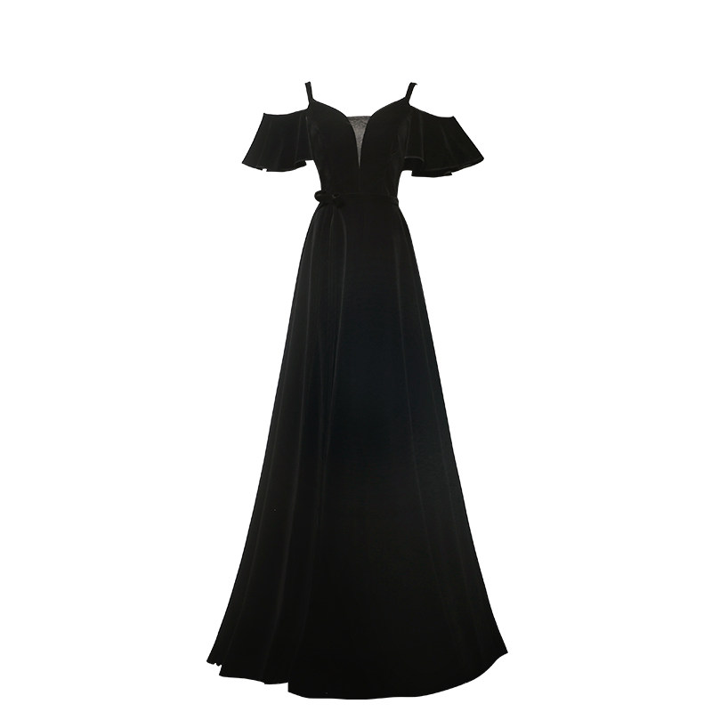 Black evening dress female 2021 new banquet noble elegant temperament thin sexy annual meeting host autumn