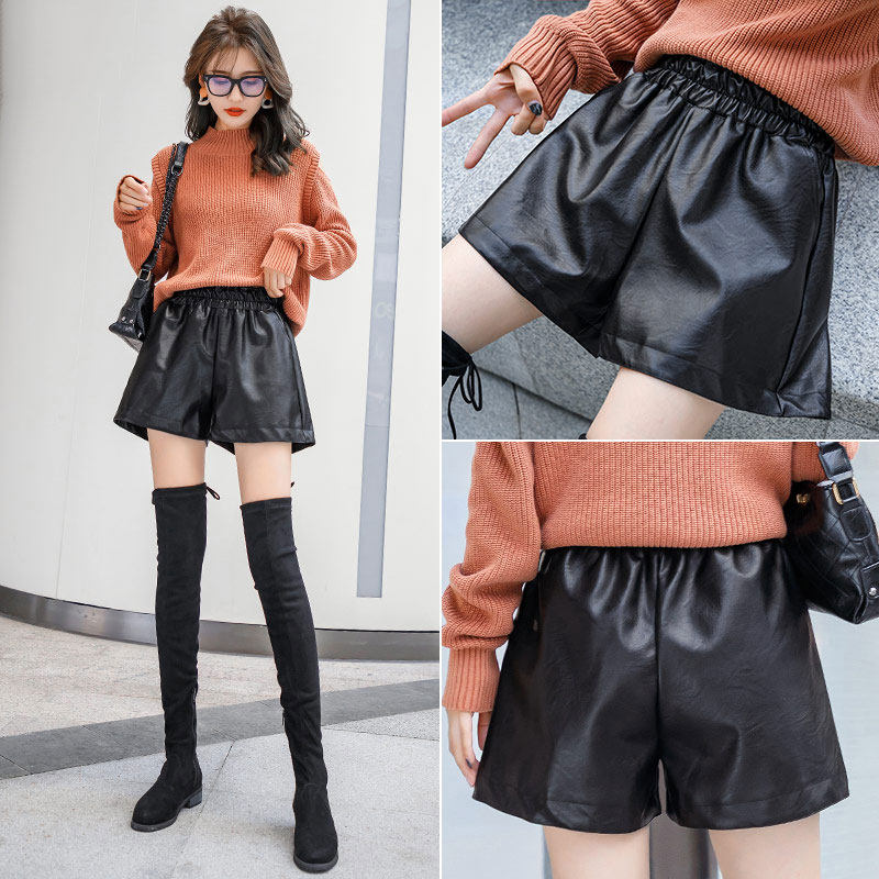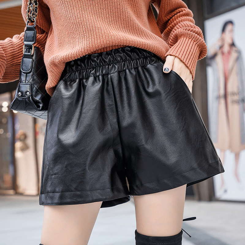 200 Catty Pants Woman Fat Mm Slim Loose Large Size Shorts High Waist 2019 New Stylish Autumn Winter Broadlegged Pu Leather