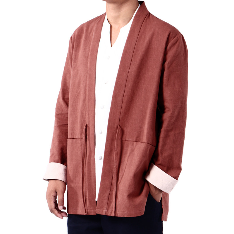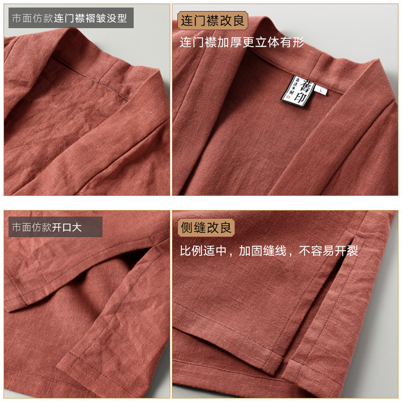 Old India-China style cotton linen Chinese wind men's retro zen tea suit fall young with improved hanfu robe youth tide