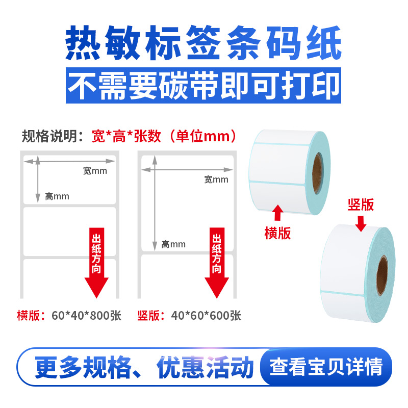 Thermal label sticker 40×30 60 80 100 milk tea waterproof label sticker supermarket barcode sticker clothing tag rookie station self-adhesive color thermal paper sheet blank custom