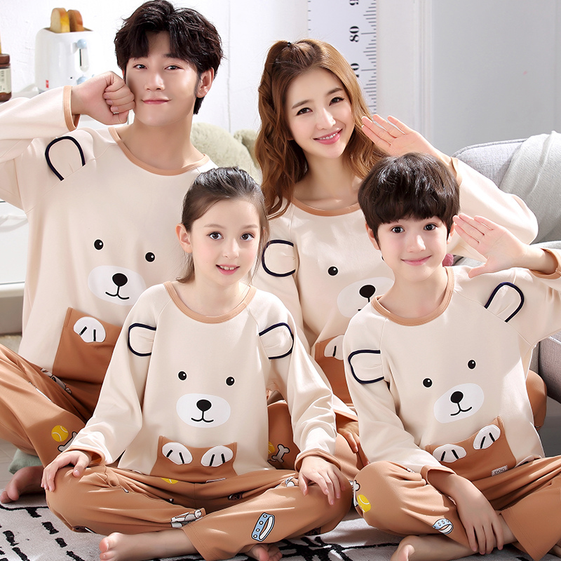 3 sets of price Parent-child sleepwear spring autumn season long sleeve pure cotton family of three mouthed mother and daughter Family clothes Home clothes